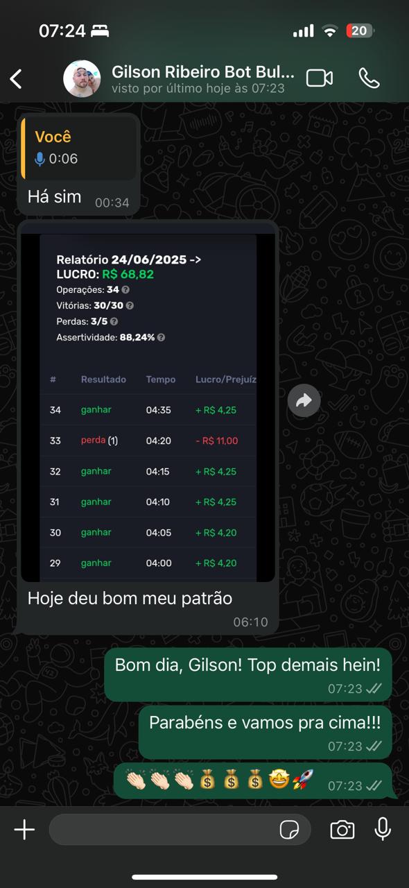Nosso sistema estuda padrões, detecta oportunidades e toma decisões calculadas para você – eliminando o fator emocional e as suposições que levam tantos traders ao prejuízo.